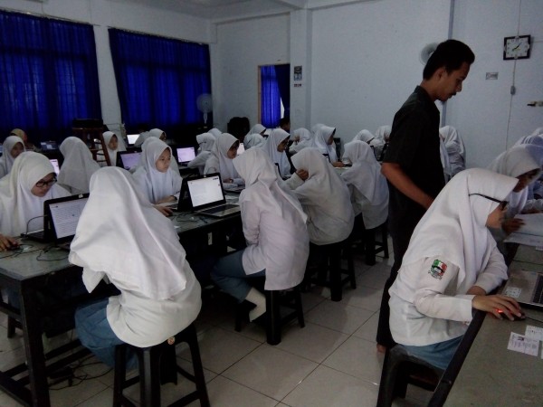 Pelaksanaan Ujian Nasional Berbasis Komputer (UNBK) di SMA Terpadu Riyadlul Ulum dilaksanakan selama empat hari mulai tanggal 10, 11, 12 dan 13 April 2017, pelaksanaan UNBK di SMA Terpadu Riyadlul Ulum di bagi menjadi tiga sesi, sesi ke-1 dari jam 07.30-09.30, sesi ke-2 dari jam 10.30-12.30 dan sesi ke-3 dari jam 14.00-16.00 WIB. Pelaksanaan UNBK setiap sesinya didampingi oleh 1 proktor, 1 teknisi serta 1 pengawas. Pada hari pertama pelaksanaan UNBK yang diujikan adalah mata pelajaran Bahasa Indonesia, hari ke dua Matematika, hari ke tiga Bahasa Inggris serta hari ke empat pelajaran pilihan jurusan. SMA Terpadu Riyadlul Ulum tahun ini adalah tahun ke dua melaksanakan UNBK, sedangkan tahun-tahun sebelumnya masih menggunakan sistem paper-based test. Jumlah siswa kelas XII yang mengikuti UNBK tahun ini berjumlah 214, jurusan IPA sebanyak 102 siswa, jurusan IPS sebanyak 92 siswa dan jurusan Bahasa sebanyak 20 siswa juga ditambah 51 siswa dari SMA lain (SMAT Darul Muta`alimin 32 siswa dan SMAT Lisda 19 siswa). UNBK tahun ini memerlukan 91 unit laptop, ditambah 4 laptop cadangan, 3 server serta 1 server cadangan. Adapun pelakanaan UNBK bertempat di Lab. Komputer 1 sebanyak 36 Unit Laptop, Lab.Komputer 2 sebanyak 36 Unit Laptop dan Lab.Komputer 3 sebanyak 19 Unit Laptop. Menilik tentang UNBK sendiri merupakan Ujian Nasional yang menggunakan komputer sebagai media ujiannya. Dalam pelaksanaannya UNBK menggunakan sistem semi-online, dimana server pusat akan mengirimkan paket soal ujian ke sekolah-sekolah secara daring, kemudian server sekolah akan memberikan soal ke peserta secara offline. Selanjutnya hasil ujian akan diunggah secara online ke server pusat kembali. Di kota Tasikmalaya tahun ini untuk jenjang SMA semuanya melaksanakan UNBK baik UNBK mandiri maupun bergabung, dengan sistem UNBK kejujuran siswa juga semakin tinggi, sebab login siswa hanya ada satu dan satu siswa satu model soal jadi tidak bisa mencontek dengan temannya, sistem baru yang tampaknya lebih terjamin demi hasil ujian yang akurat dan jujur ini bisa saja menjadi motivasi pendorong prestasi siswa SMA Terpadu Riyadlul Ulum. Kita buktikan bahwa SMA Terpadu Riyadlul Ulum memang bisa dan hasil dari UNBK didapatkan dengan dengan hasil yang jujur dan tanpa kecurangan.
