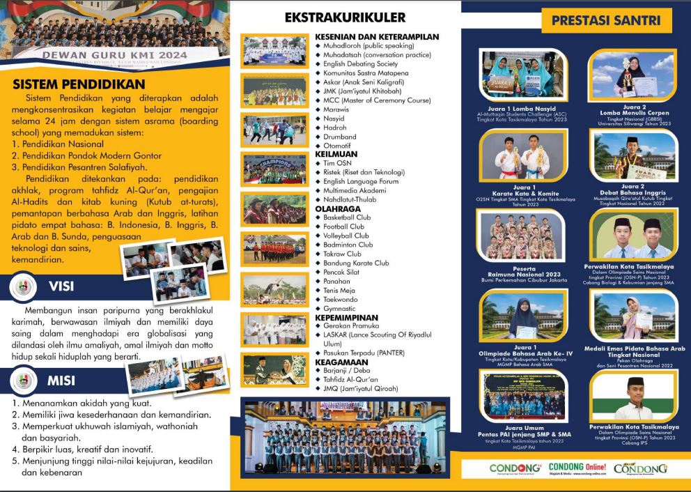 VISI : Membangun insan paripurna yang berakhlakul karimah,berwawasan ilmiyah dan memiliki daya saing dalam menghadapi era globalisasi yang dilandasi oleh ilmu amaliyah,amal ilmiyah dan motto hidup sekali hiduplah yang berarti - MISI : 1. Menanamkan akidah yang kuat; 2. Memiliki jiwa kesederhanaan dan kemandirian; 3. Memperkuat ukhuwah islamiyah, wathoniah dan basyariah; 4. Berpikir luas, kreatif dan inovatif; 5. Menjunjung tinggi nilai-nilai kejujuran, keadilan dan kebenaran.